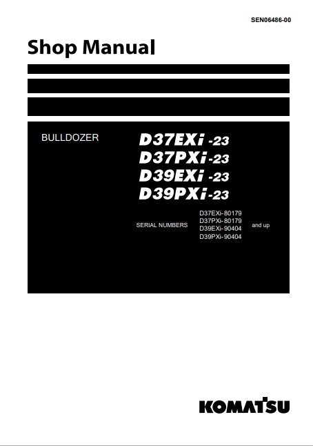 Komatsu workshop manual for D37EXi-23, D37PXi-23, D39EXi-23, and D39PXi-23, providing essential service informationKomatsu D37EXi-23, Komatsu D37PXi-23, Komatsu D39EXi-23, Komatsu D39PXi-23 Workshop Manual