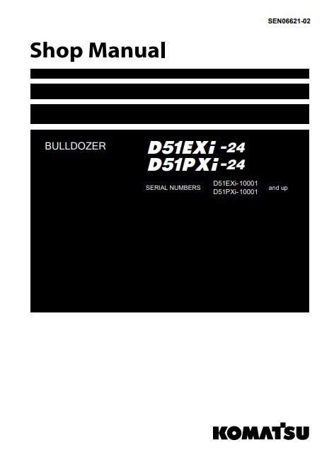 The Komatsu D51EXi-24 and D51PXi-24 Bulldozer Workshop Manual is an essential resource for operators and technicians seeking to maximize the performance and longevity of their machinery. This comprehensive manual provides detailed instructions on maintenance, troubleshooting, and repair procedures, ensuring that you can efficiently address any issues that may arise. With clear diagrams and step-by-step guidance, this workshop manual empowers you to keep your bulldozer in optimal working condition, ultimately enhancing productivity on the job site. Invest in this manual today to ensure your equipment operates at its best
