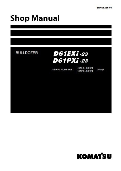 Enhance your maintenance capabilities with the Komatsu D61EXi-23 and D61PXi-23 Bulldozer Workshop Manual. This comprehensive guide provides detailed instructions and specifications, ensuring you have the knowledge to perform repairs and servicing with confidence. Designed specifically for these models, it covers everything from routine maintenance to complex troubleshooting, making it an essential resource for operators and technicians alike. Invest in this manual to maximize the performance and longevity of your bulldozer, ensuring it remains a reliable asset on any job site