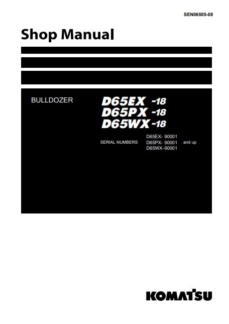 Enhance your maintenance capabilities with the Komatsu D65EX-18, D65PX-18, and D65WX-18 Bulldozer Workshop Manual. This comprehensive guide provides detailed instructions, diagrams, and specifications essential for efficient servicing and repair of your bulldozer models. With clear, step-by-step procedures, you can ensure optimal performance and longevity of your equipment, reducing downtime and costly repairs. Invest in this manual to empower your team with the knowledge needed to keep your machinery running smoothly and effectively