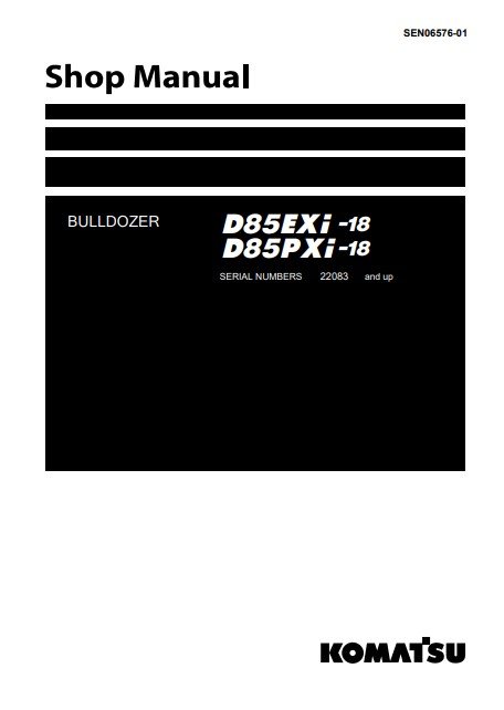 Komatsu D85EXi-18 and D85PXi-18 bulldozer workshop manual, providing essential information for maintenance and troubleshootingKomatsu D85EXi-18, Komatsu D85PXi-18 Bulldozer Workshop Manual