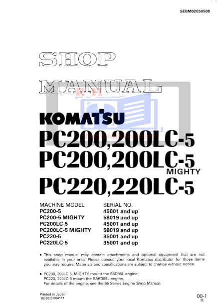Komatsu Excavator PC – 5 All Workshop Manuals Collection
