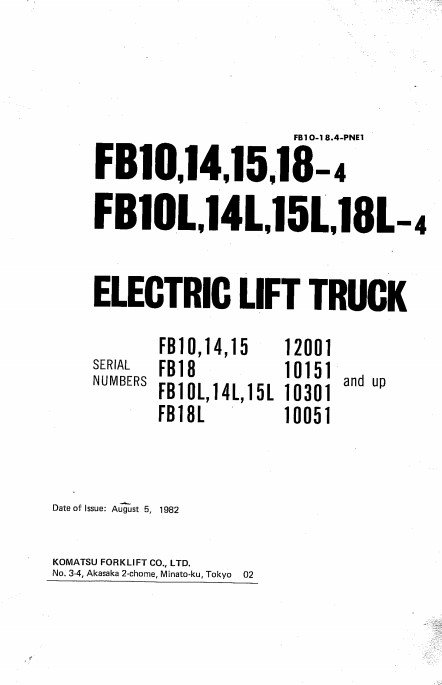 Komatsu Electric Lift Truck FB10.14.15.18 parts manual, providing essential information on parts and maintenanceKomatsu Electric Lift Truck FB10.14.15.18 Parts Manual
