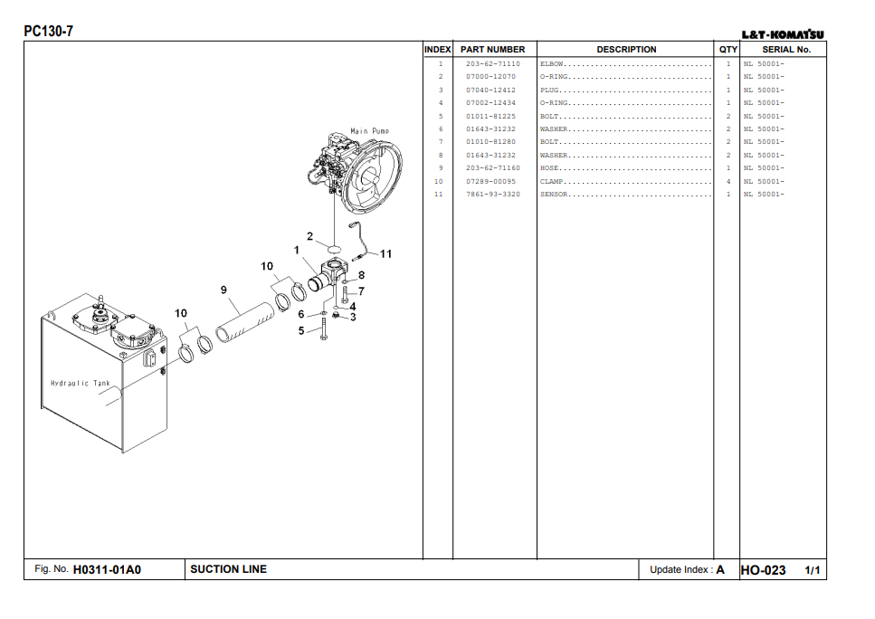 Komatsu PC130-7 Excavator Spare Parts Catalogue