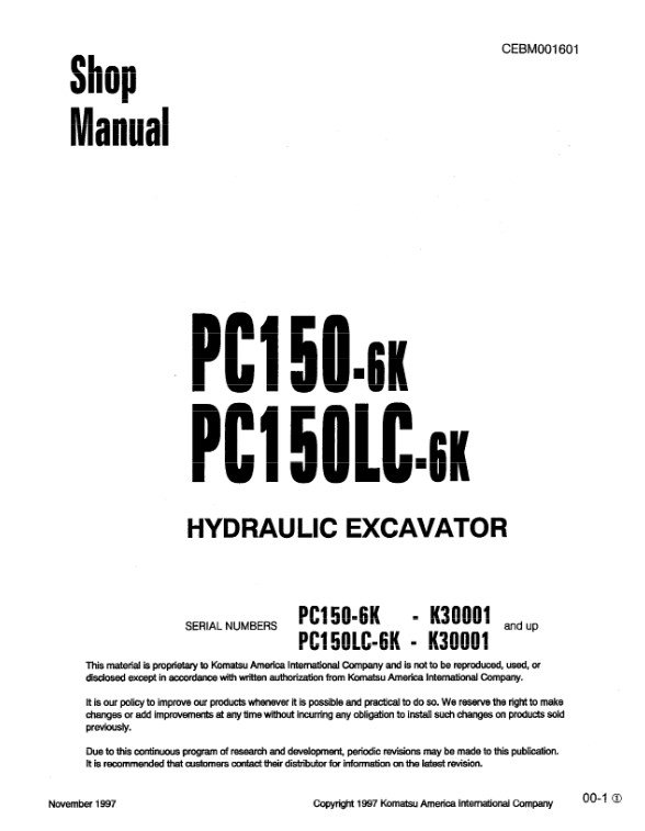 Enhance your maintenance capabilities with the Komatsu PC150-6K and PC150LC-6K Workshop Repair Manual. This comprehensive guide provides detailed instructions, diagrams, and troubleshooting tips specifically designed for these models, ensuring you can perform repairs and maintenance with confidence. With this manual, you’ll save time and money by tackling repairs in-house, keeping your machinery running smoothly and efficiently. Invest in your equipment’s longevity and performance today