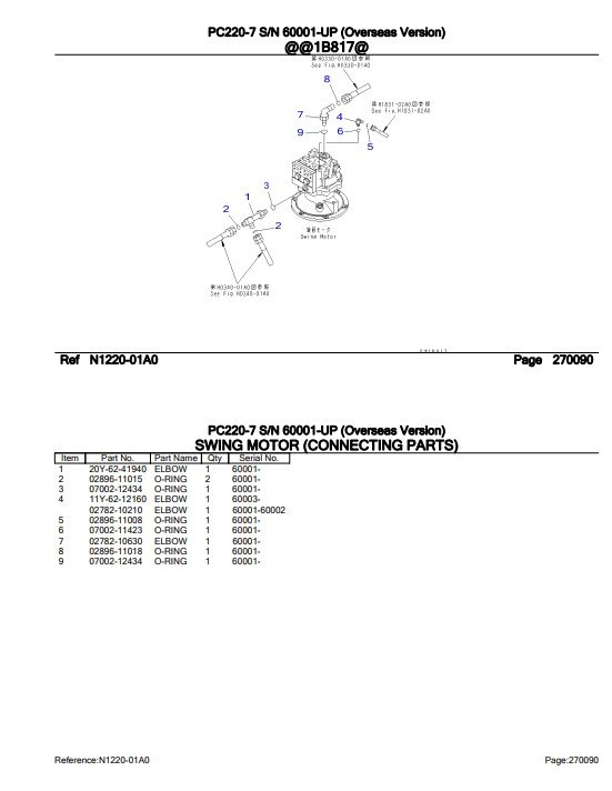 Komatsu PC220-7 Excavator Parts Manual