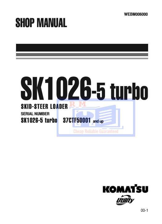 Workshop manual for Komatsu SK1026-5N Turbo Skid Steer Loader, displaying essential maintenance and operation guidelinesKomatsu SK1026-5N Turbo, Skid Steer Loader Workshop Manual
