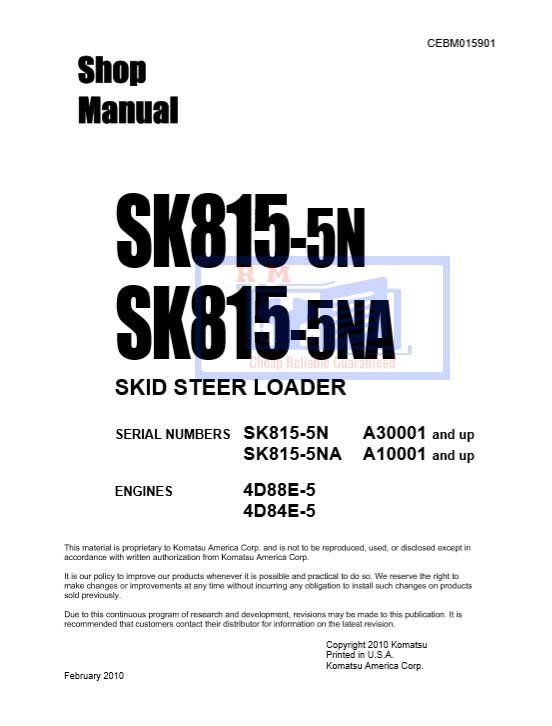 Komatsu SK815-5N and SK815-5NA skid steer loader workshop manual, providing essential maintenance and operational guidelinesKomatsu SK815-5N, Komatsu SK815-5NA Skid Steer Loader Workshop Manual