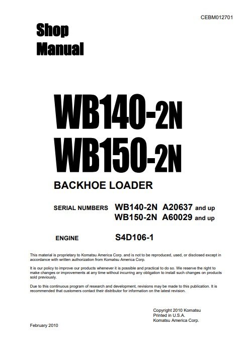 Enhance your maintenance capabilities with the Komatsu WB140-2N and WB150-2N USA Backhoe Loader Workshop Manual. This comprehensive guide provides detailed instructions, diagrams, and troubleshooting tips specifically designed for these models, ensuring you can perform repairs and maintenance with confidence. With this manual, you’ll save time and money by tackling issues in-house, keeping your backhoe loader in optimal working condition for all your projects. Invest in this essential resource to maximize the performance and longevity of your equipment