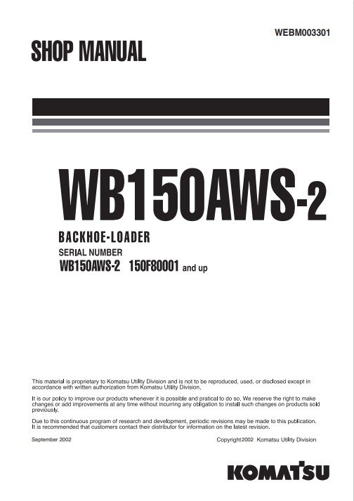 Komatsu WB150AWS-2 Italy Backhoe Loader Workshop Manual