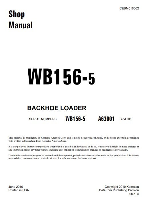 Komatsu WB156-5 USA Backhoe Loader Workshop Manual