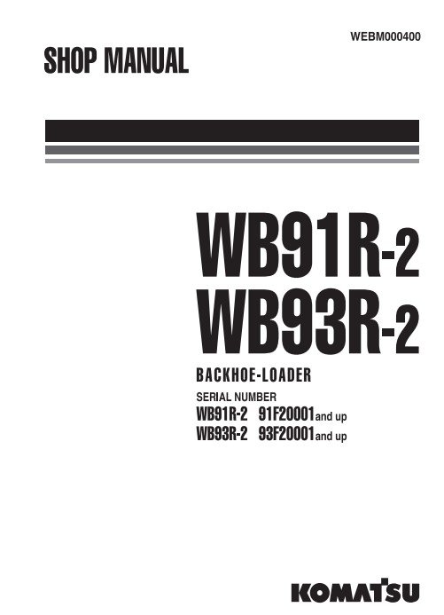Enhance your maintenance and repair capabilities with the Komatsu WB91R-2 and WB93R-2 Backhoe Loader Workshop Manual. This comprehensive guide provides detailed instructions, diagrams, and specifications to ensure your equipment operates at peak performance. With easy-to-follow steps, you can confidently tackle repairs and maintenance tasks, reducing downtime and extending the life of your backhoe loader. Invest in this essential manual to keep your machinery running smoothly and efficiently