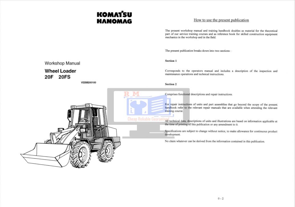 Whether you’re performing a quick service or a complete overhaul, this manual is your essential companion for maximizing the performance and longevity of your Komatsu 20F, 20FS Wheel Loaders