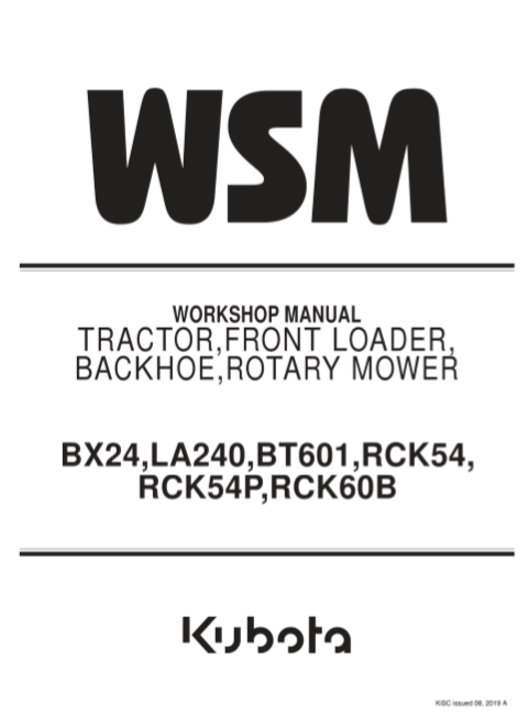 Kubota BX24, LA240, BT601, RCK54, RCK54P, RCK60B Tractors Workshop Repair Manual