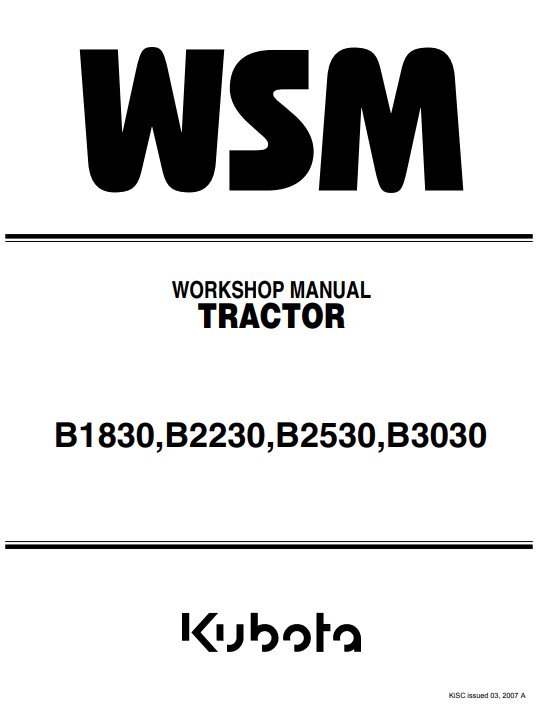 The full potential of your Kubota B1820, B2230, B2530, and B3030 tractors with our comprehensive Workshop Manual. This essential guide provides detailed instructions, diagrams, and troubleshooting tips to ensure your equipment runs smoothly and efficiently. Whether you’re performing routine maintenance or tackling complex repairs, this manual is designed to empower you with the knowledge needed to keep your tractor in peak condition. Invest in your machinery’s longevity and performance