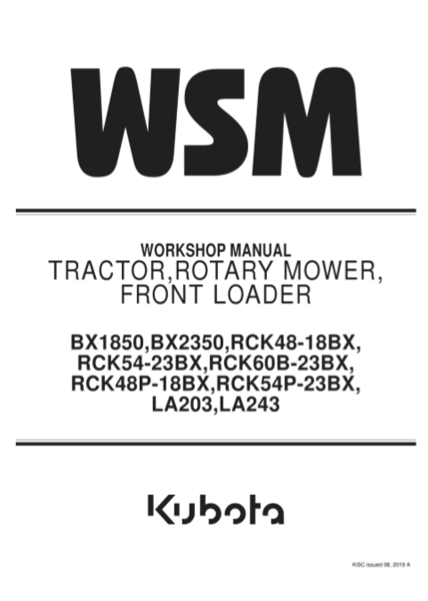 Kubota BX1850, BX2350, RCK48-18BX, RCK54-23BX, RCK60B-23BX, RCK48P-18BX, RCK54P-23BX, LA203, LA243 Tractors Workshop Repair Manual