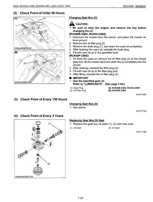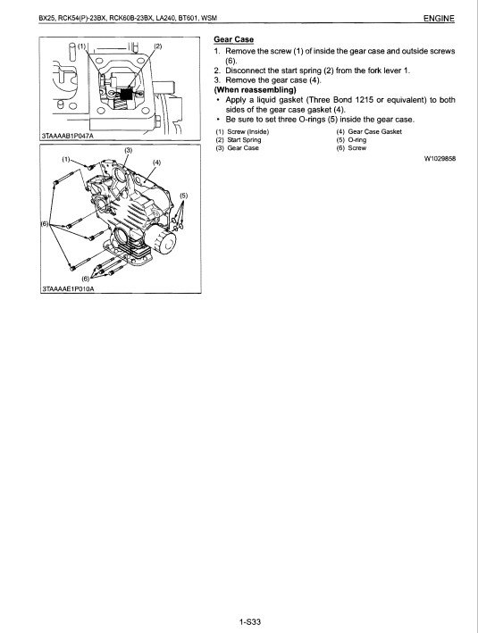 Kubota BX25, RCK54(P)-23BX, RCK60B-23BX, LA240, BT601 Workshop Manual