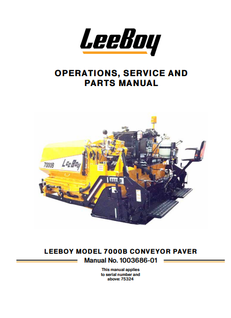 LEEBOY MODEL 7000B CONVEYOR PAVER [This manual appliesto serial number above: 75324]