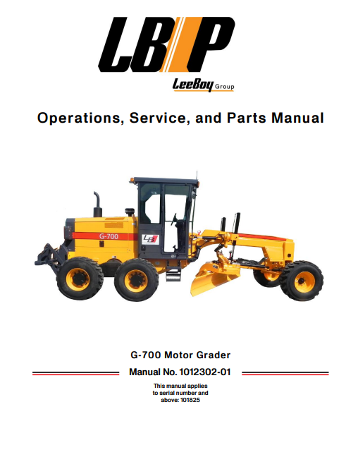 Leeboy G-700 Motor Grader [This manual applies to serial number above: 101825]