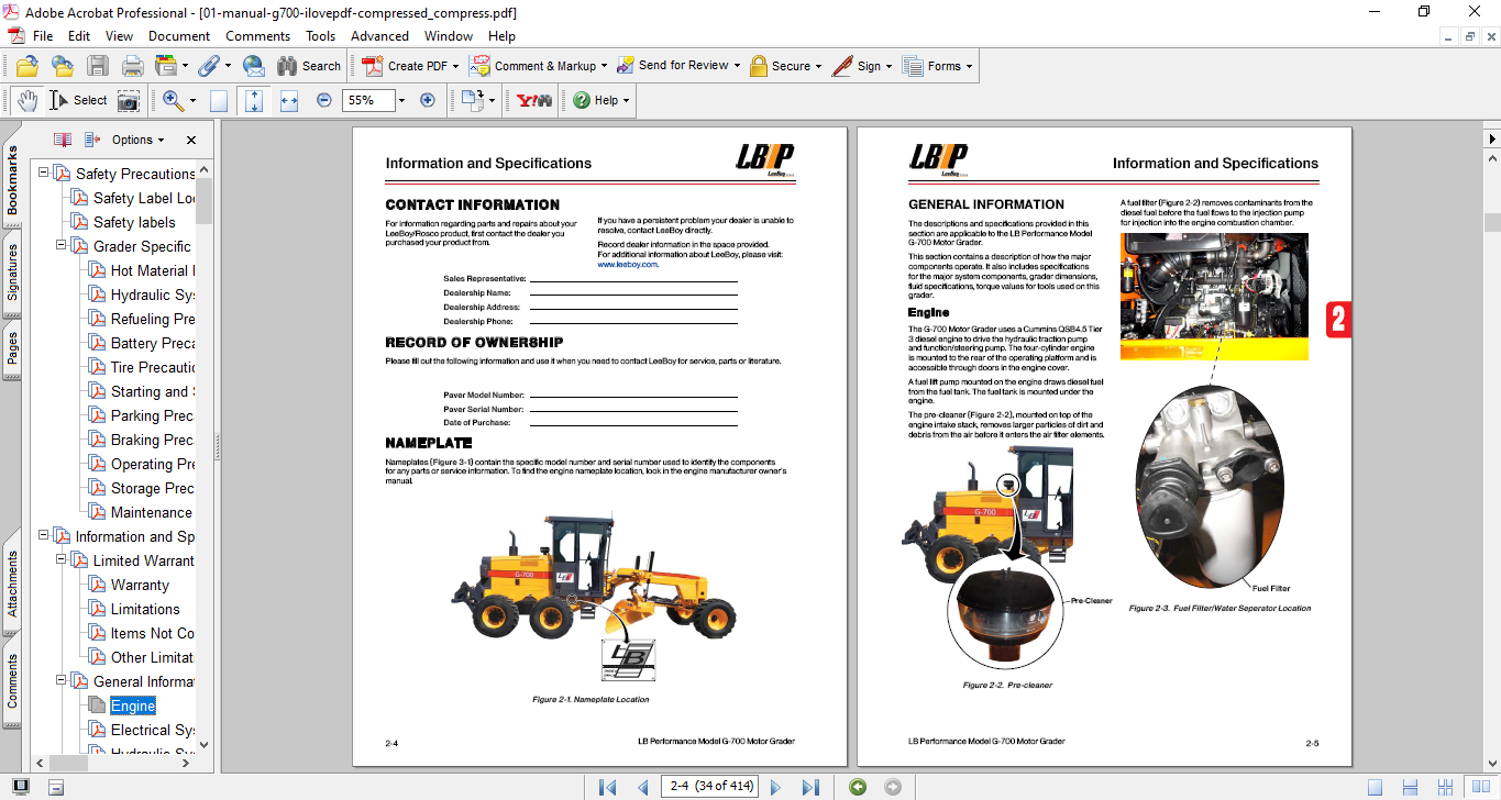 Enhance your operational efficiency with the Leeboy G-700 Motor Grader Operations, Service, and Parts Manual. This comprehensive guide is essential for both seasoned operators and maintenance personnel, providing detailed instructions on operation, servicing, and parts identification. With clear diagrams and step-by-step procedures, you can ensure optimal performance and longevity of your equipment, minimizing downtime and maximizing productivity. Invest in this manual to empower your team with the knowledge needed for effective maintenance and operation of the Leeboy G-700