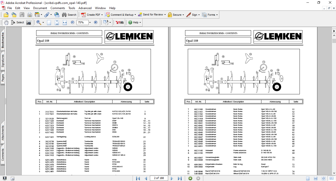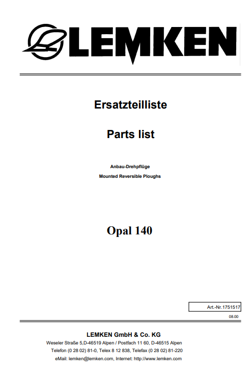With This Original Factory Parts Manuals The Technician can easily find any Part Number and Correct Part encountered in the operation of your Lemken Opel Models of :
