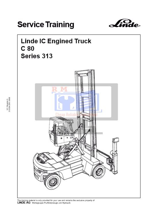 Linde C80 Series 313 Service Training Manual cover featuring technical illustrationsLinde C80 Series 313 Service Training Manual