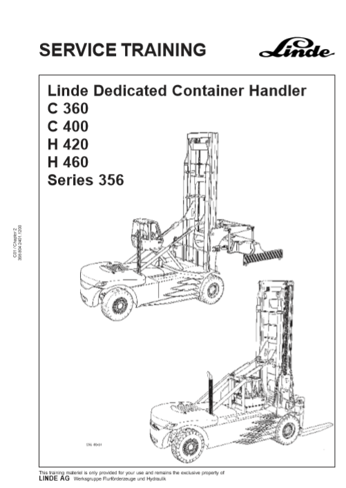 Linde Container Handler C360, C400, H420, H460 Series 356 Service Training Manual