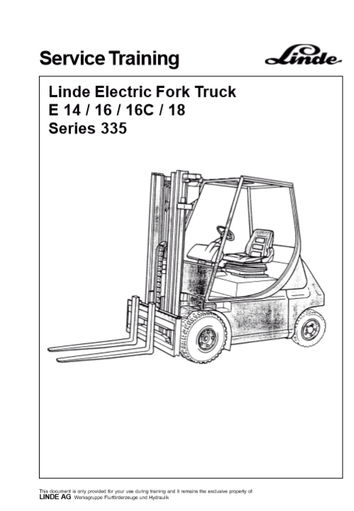 Linde E16 Electric Forklift Service Training Manual (Serries 335)