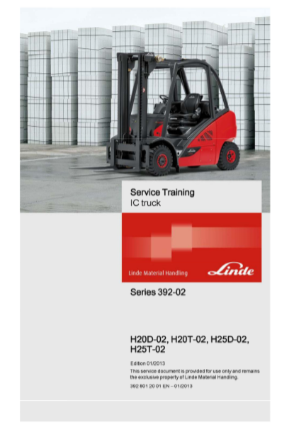 Linde Forklift H20D-02, H20T-02, H25D-02, H25T-02 Service Training Manual