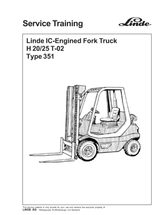 Linde Forklift Truck H20, H25, T-02 Type 351 Service Training Manual