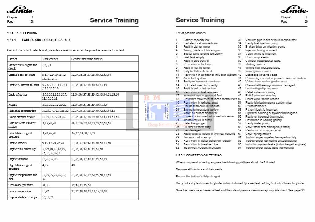 With This Original factory Service Training Manual [contains high quality images, circuit diagrams and instructions] The Technician can solve any problems encountered in the maintenance of your Linde Forklift Truck Models of :