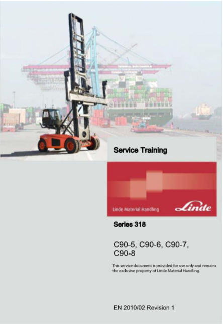 Linde Material Handling C90 Series 318 Service Training Manual for models C90-5, C90-6, C90-7, and C90-8Linde Material Handling C90-5, C90-6, C90-7, C90-8 Series 318 Service Training Manual