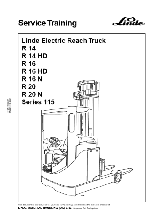 Linde R14 Electric Reach Truck (Series 115) Service Training Manual