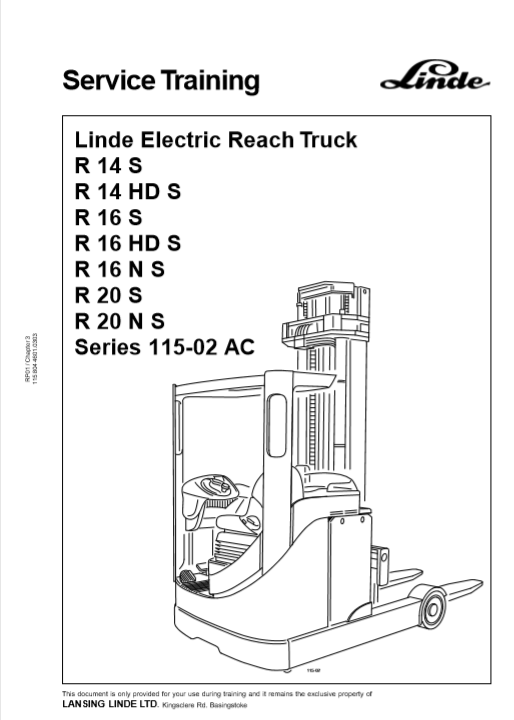 The Linde R16N S Electric Reach Truck Service Training Manual is an essential resource for operators and maintenance personnel seeking to enhance their understanding and proficiency with this advanced material handling equipment. This comprehensive manual provides detailed insights into the operational procedures, safety protocols, and maintenance practices specific to the Linde R16N S model. With clear illustrations and step-by-step instructions, users will gain valuable knowledge on how to effectively operate the reach truck, troubleshoot common issues, and perform routine maintenance tasks. This training manual not only ensures compliance with safety standards but also promotes optimal performance and longevity of the equipment, making it a vital addition to any warehouse or logistics operation. Equip your team with the expertise they need to maximize efficiency and minimize downtime with the Linde R16N S Electric Reach Truck Service Training Manual