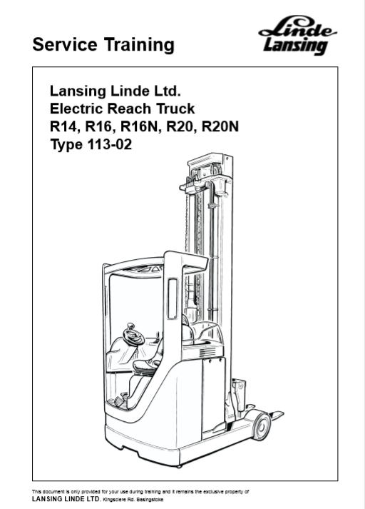 Lined Electric Reach Truck Linde R20N Service Training Manual