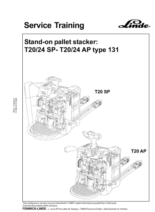 Linde T20 Pallet Stacker Service Training Manual