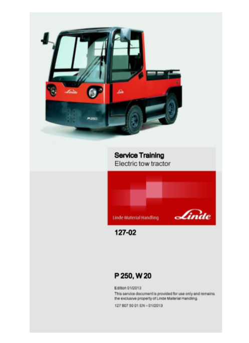 The Linde W20 Electric Tow Service Training Manual is an essential resource for operators and trainers seeking to enhance their understanding of the Linde W20 electric tow tractor. This comprehensive manual provides detailed instructions on the safe and efficient operation of the vehicle, covering critical topics such as pre-operation checks, operational guidelines, maintenance procedures, and troubleshooting tips. With clear illustrations and step-by-step procedures, users will gain valuable insights into the functionality of the W20, ensuring they can maximize productivity while minimizing risks. Whether you are a seasoned operator or new to electric tow tractors, this training manual serves as a vital tool to promote safety and efficiency in your workplace, ultimately leading to improved performance and reduced downtime