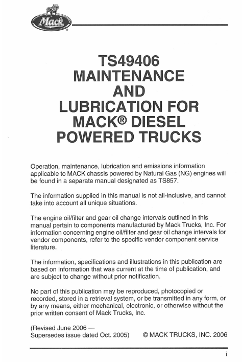 Mack Truck 2006 Maintenance and Lubrication Operator’s Manual