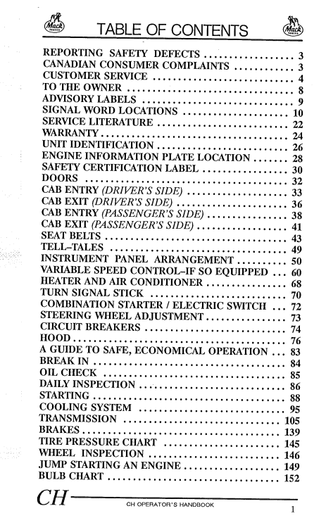 The Mack Truck 1995 CH Series Operators Manual is an essential resource for any owner or operator of this iconic heavy-duty vehicle. This comprehensive guide provides detailed information on maintenance, operation, and troubleshooting, ensuring optimal performance and longevity of your truck. With clear illustrations and step-by-step instructions, you can easily navigate through complex systems and keep your Mack Truck running smoothly. Invest in this manual to enhance your knowledge and ensure your vehicle remains in peak condition for years to come
