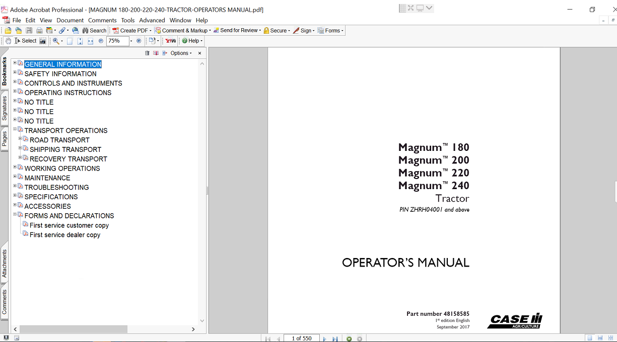 Increase the efficiency of farming with the manual manual of the operator of the case Magnum 240 tractor. This broad guide provides the necessary information on operation, maintenance and troubleshooting, and ensures that you get the most out of your powerful machinery. With clear instructions and wide charts, you can safely navigate your tractor properties, adapt to performance and expand your life. To strengthen your agricultural effort, invest in this manual and run Magnum 240 evenly