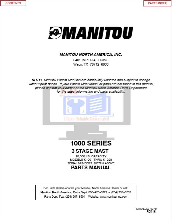 Manitou 1000 Series Parts Manual