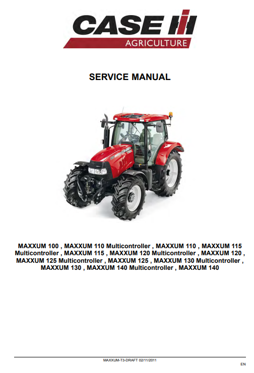 The Case IH Maxxum 100 to Maxxum 140 Service Repair Manual is an essential resource for any owner or technician looking to maintain and repair these powerful tractors. This comprehensive guide provides detailed instructions, diagrams, and troubleshooting tips to ensure optimal performance and longevity of your equipment. With clear, step-by-step procedures, you can confidently tackle repairs and service tasks, saving time and money while keeping your tractor in peak condition. Invest in this manual to enhance your knowledge and ensure your Maxxum series tractor operates at its best