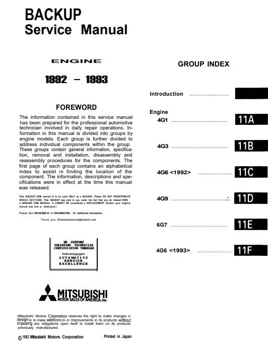 Mitsubishi 4G1 Series Engine Service Manual