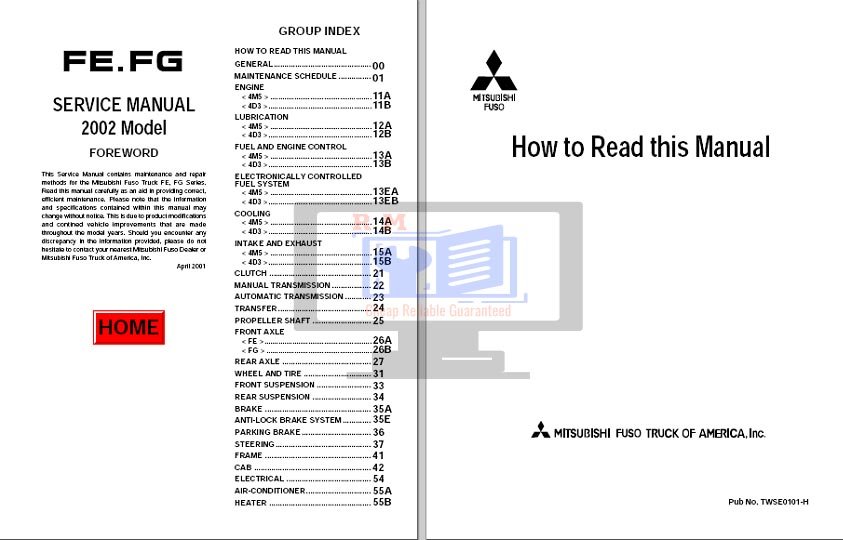 Service Repair Manual for Mitsubishi Fuso 2002-2004 models, displaying a truck image and repair instructionsMitsubishi Fuso 2002-2004 All Models Service Repair Manual