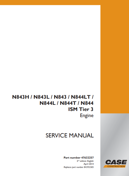 Case N843H, N843L, N843, N844LT, N844L, N844T, N844 Engines Service Repair Manual