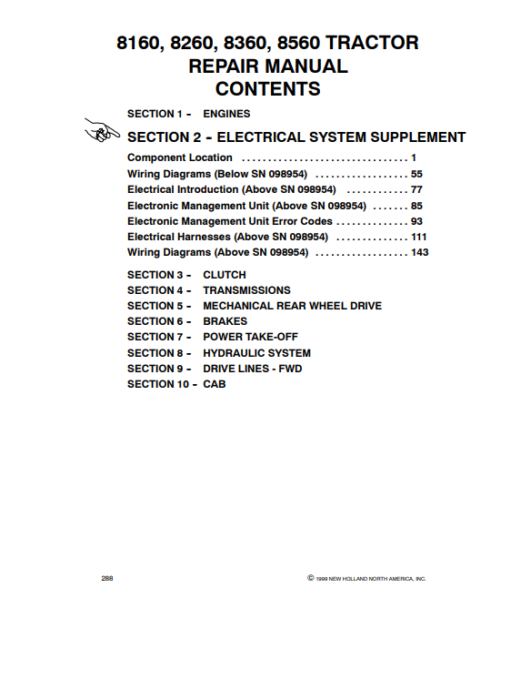 New Holland 8160, 8260, 8360, 8560 Tractor Repair Manual