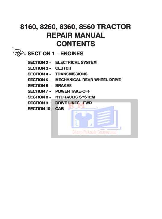 Whether you’re performing a quick service or a complete overhaul, this manual is your essential companion for maximizing the performance and longevity of your New Holland 8160, 8260, 8360, 8560 Tractors