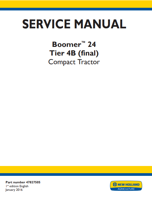 The New Holland Boomer 24 Compact Tractor Service Repair Manual is an essential resource for any owner or technician looking to maintain and repair this powerful machine. This comprehensive guide provides detailed instructions, diagrams, and troubleshooting tips to ensure optimal performance and longevity of your tractor. With clear, step-by-step procedures, you can confidently tackle repairs and routine maintenance, saving time and money while keeping your equipment in top condition. Invest in this manual to enhance your knowledge and ensure your New Holland Boomer 24 operates at its best
