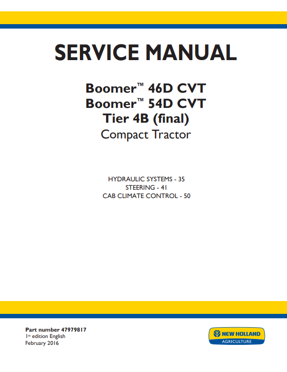 New Holland Boomer 46D CVT, Boomer 54D CVT Tier 4B (final) Compact Tractor Service Manual