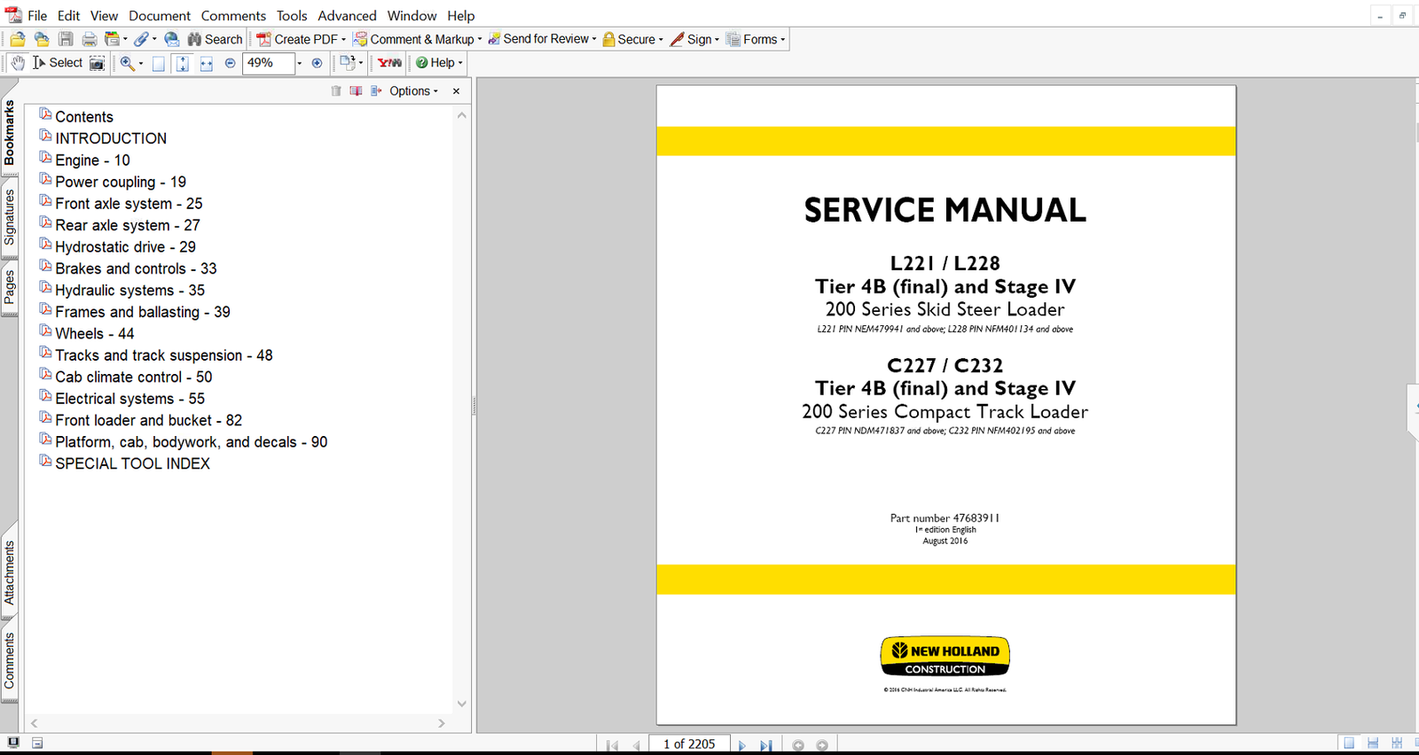 Ensure top performance and long-lasting durability of your New Holland C232 Track Loader with this comprehensive Service Repair Manual. Designed specifically for professional technicians, mechanics, and equipment owners, this manual provides detailed instructions, diagrams, and specifications to perform maintenance, service, diagnostics, and repairs with confidence